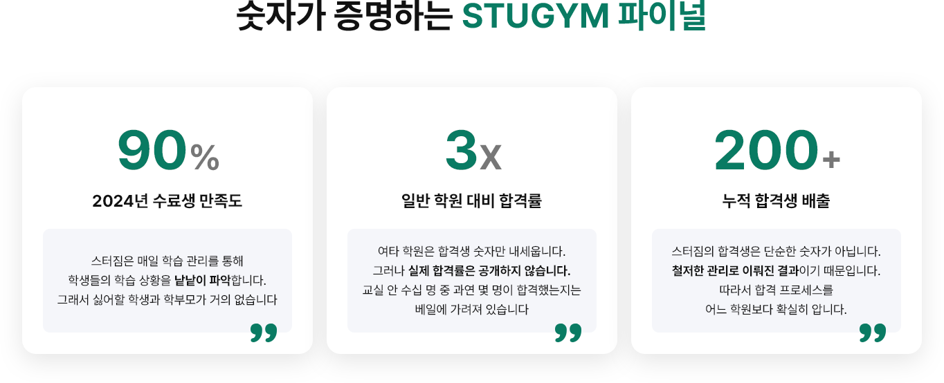 특히 스터짐 최영 선생님께서는 학습 관리 뿐만 아니라 학습 의지가 약해질 때마다 관리방에서 동기부여와 응원의 메시지를 주셨습니다.