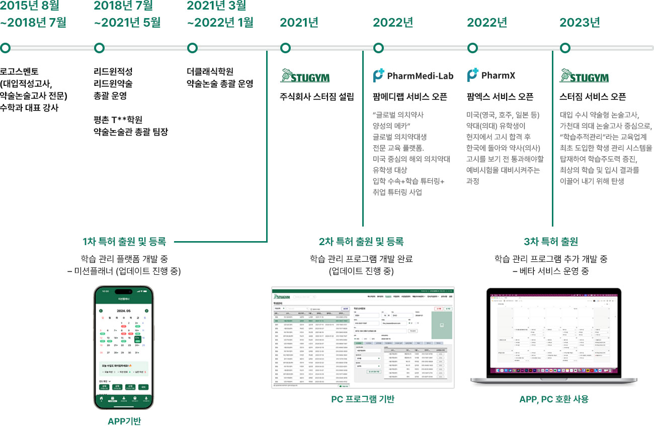 관리시스템 도입 시도 운영 학원에서 적성고사, 약술논술 1:1 학습 관리 시스템 도입. 하지만 1대 다 수업 구조의 한계로 관리 프로그램 개발 실패